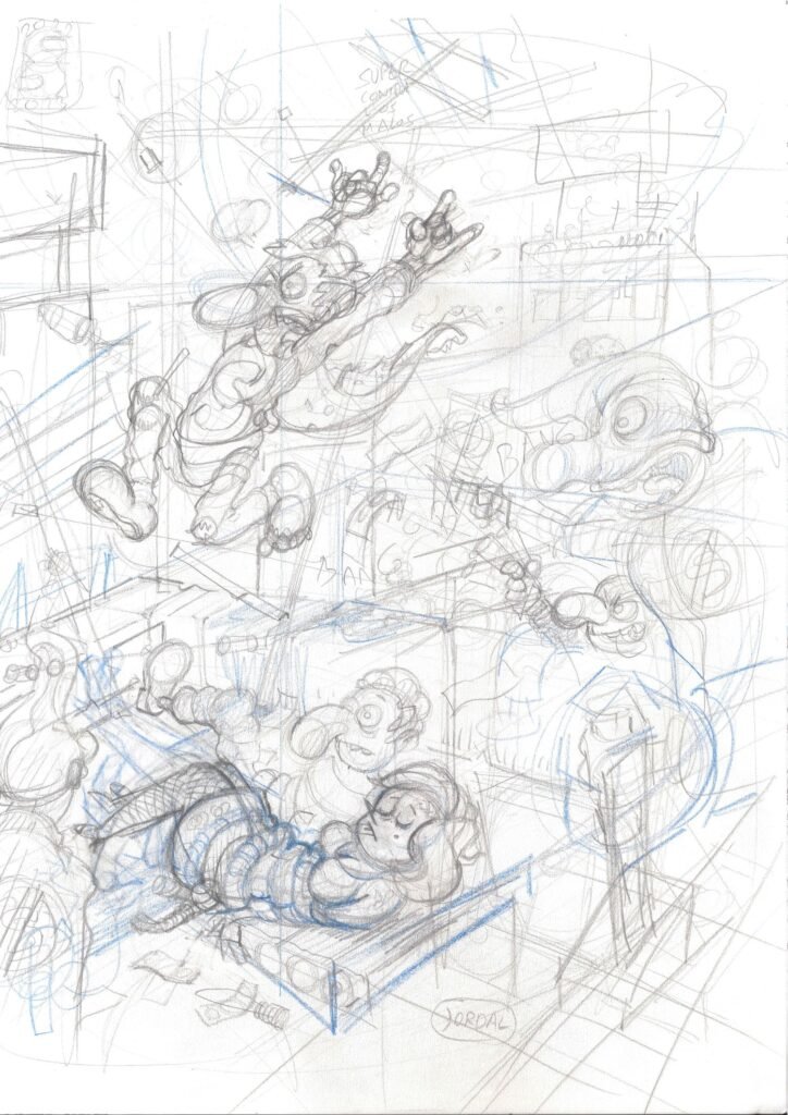 Cachabolik Blues Rock,” although not a classic, I still find it hilarious, original, and totally unexpected. It marks an increasingly realistic drawing style. The supporting characters become protagonists, but the parody remains. The discourse about the artist who does something commercial instead of what he would like to do is interesting, a message that is both transparent and disconcerting coming from an artist of Jan’s stature in a comic “for children.”